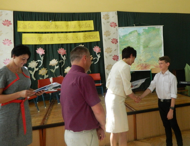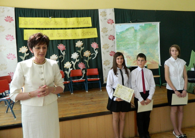 Podczas uroczystości wszyscy szóstoklasiści otrzymali świadectwa ukończenia szkoły podstawowej. Nagrodzono najlepszych absolwentów naszej szkoły oraz tych uczniów, którzy uzyskali świadectwa "z paskiem". Uhonorowano też listami gratulacyjnymi rodziców uczniów z najwyższą średnią ocen, tj.powyżej 5.0. Zgodnie z ceremoniałem, odchodzący uczniowie złożyli ślubowanie i przekazali sztandar szkoły młodszym kolegom. Tradycyjnie już w imieniu całej społeczności szkolnej, odchodzące koleżanki i odchodzących kolegów pożegnali piątoklasiści i pierwszoklasiści.