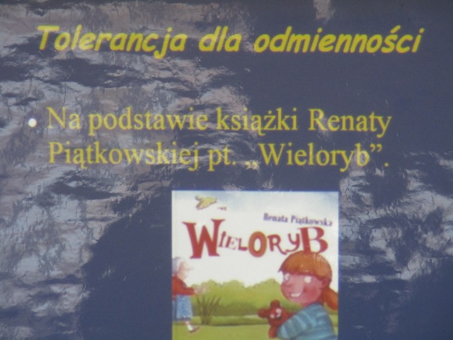 Klasa I - Czytanie na dywanie: Bohaterowie książek; Klasa II i III - Koziołek poleca: Tolerancja dla odmienności(na podstawie książki pt. "Wieloryb" Renaty Piątkowskiej);