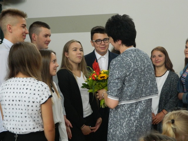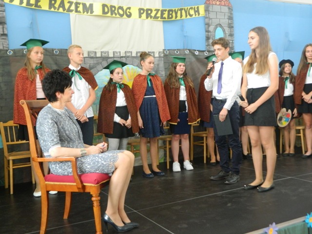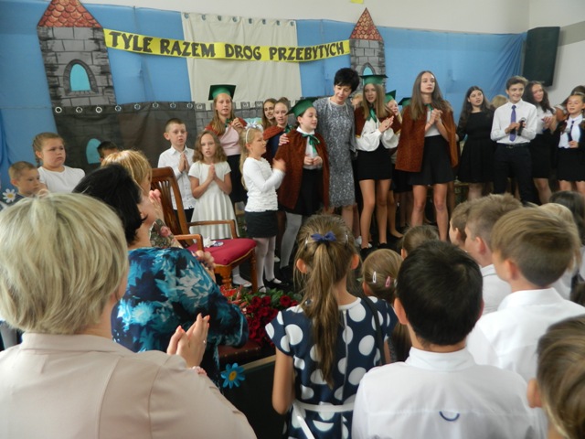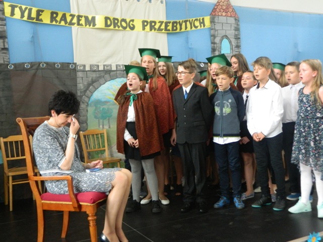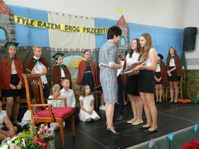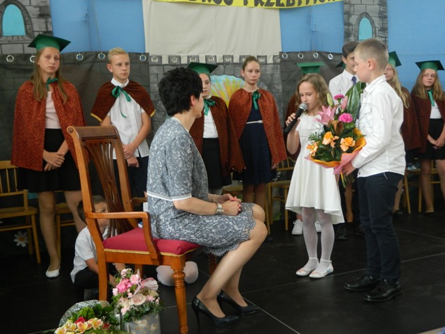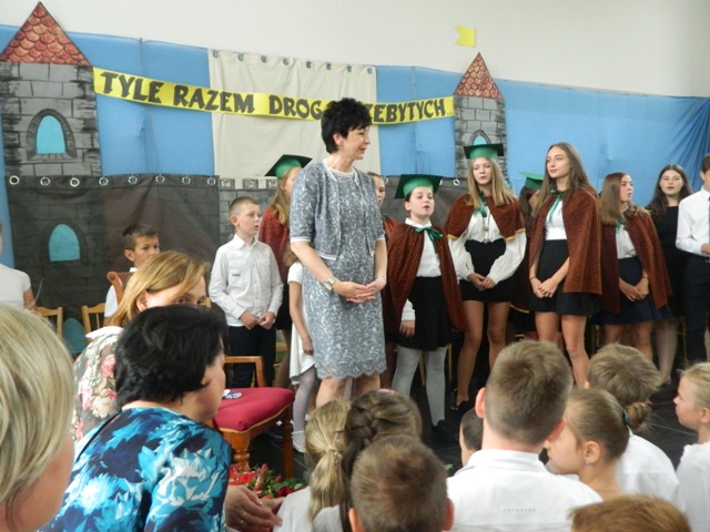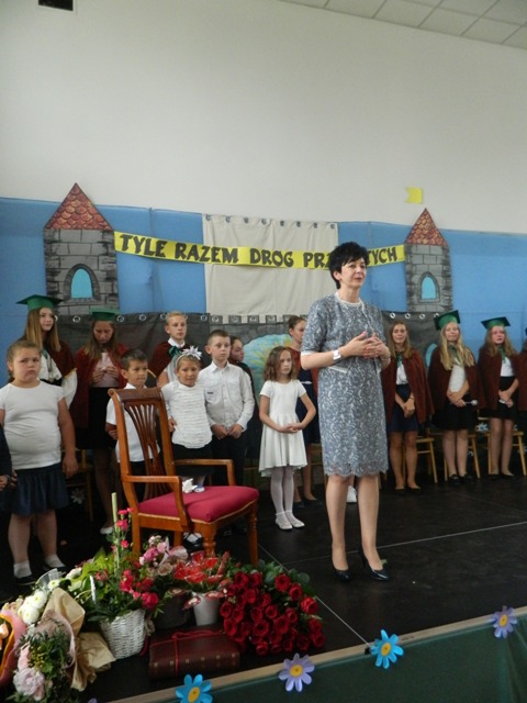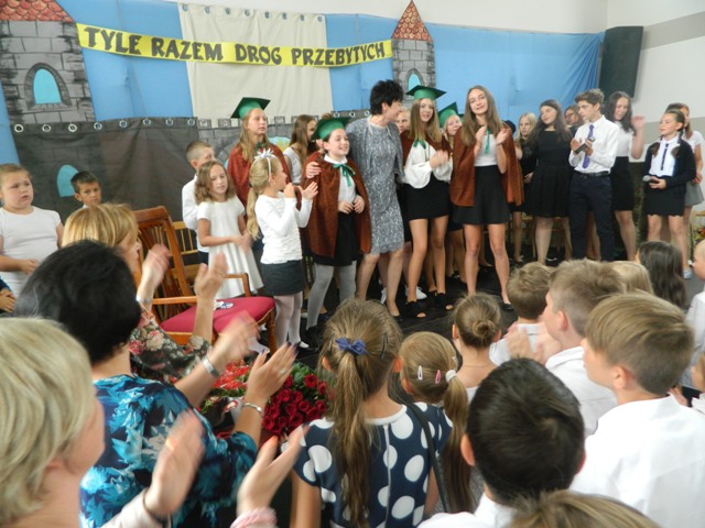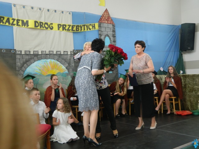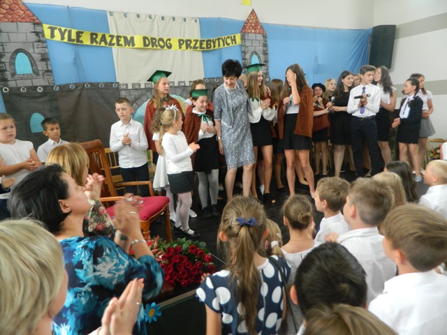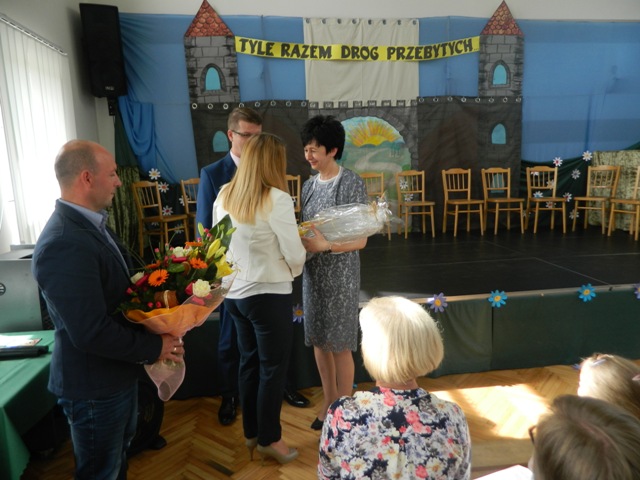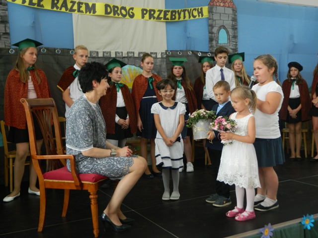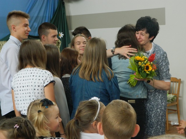 Zakończenie roku szkolnego to zawsze miłe wydarzenie - wreszcie upragnione wakacje! Jednak to zakończenie było wyjątkowe, gdyż radość mieszała się ze smutkiem, uśmiechy ze łzami. A dlaczego? Nasza droga Pani Dyrektor odchodzi na zasłużoną emeryturę. Pani Dyrektor! Współpraca i nauka z Panią była dla nas zaszczytem i wyróżnieniem. Dziękujemy za wszystkie wspaniałe lata Pani pracy- jako nauczyciela i dyrektora- bo zapisała Pani w historii naszej szkoły i przedszkola wartościowe karty. W dniu przejścia na emeryturę życzymy Pani, aby zrealizowała Pani wszystkie swoje marzenia, a przyszłość, która jest przed Panią przyniosła same słoneczne dni, uśmiech, radość, bo przecież „Ważne są dni, których jeszcze nie znamy.” Prosimy pamiętać, że nasz Zespół zawsze powita Panią z ogromną radością. Jeszcze raz z całego serca dziękujemy.