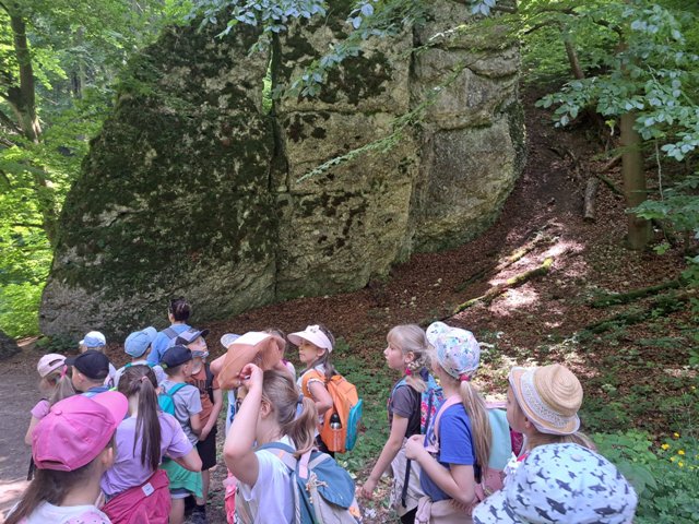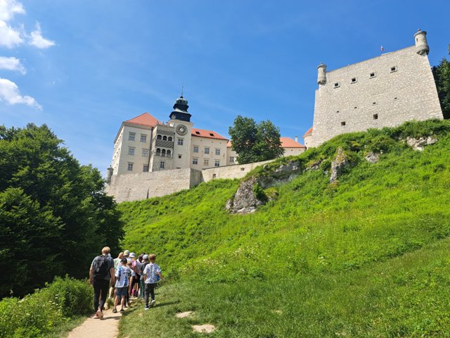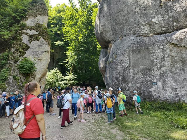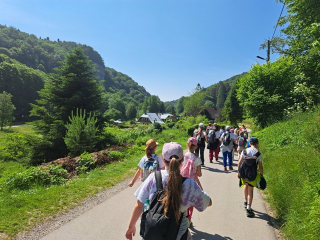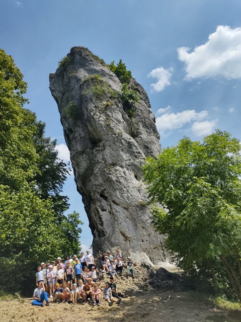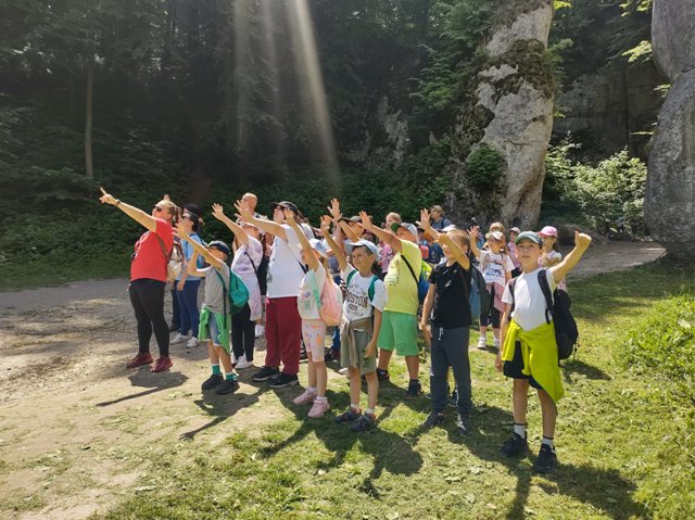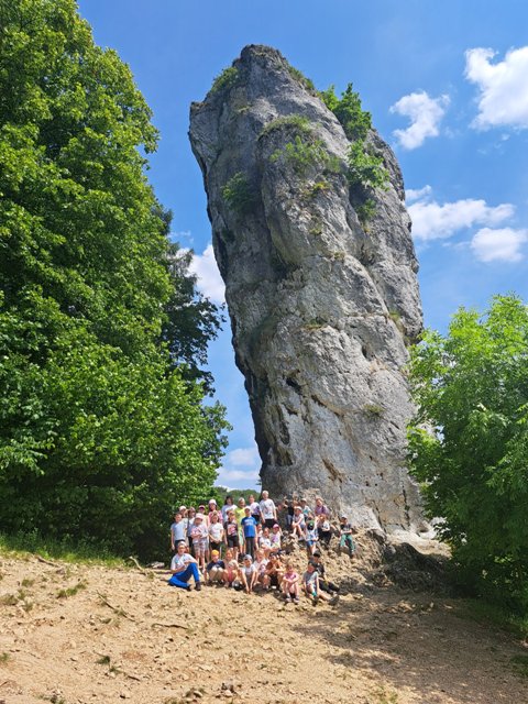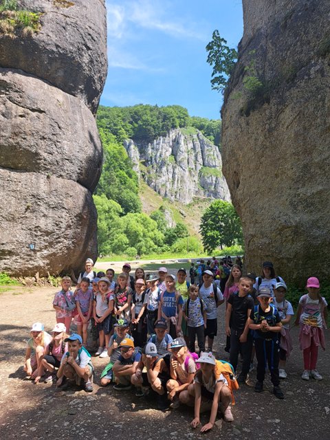 Przedwakacyjny czas jest okresem szkolnych wycieczek, dzięki którym uczniowie wdrażani są do czynnego i kulturalnego wypoczynku. 18 czerwca 2025 r. klasy młodsze z naszego Zespołu wraz z opiekunami odwiedziły Ojców - maleńką miejscowość na Szlaku Orlich Gniazd. Obejrzały Ekspozycję Przyrodniczą w Centrum Edukacyjno - Muzealnym Ojcowskiego Parku Narodowego, w której wykorzystano technologię 3D do przedstawienia tajemnic Parku oraz odkrywania eksponatów geologicznych i paleontologicznych. W ten piękny, słoneczny dzień uczniowie odbyli spacer szlakiem turystycznym, podczas którego poznawali formy ochrony przyrody i podziwiali osobliwości Ojcowskiego Parku Narodowego: soczystą zieleń kontrastującą z jasnymi ostańcami, malowniczo wijący się Prądnik i charakterystyczne skały wapienne o niesamowitych kształtach, np. Brama Krakowska i Rękawiczka. Nasi młodzi turyści zwiedzili Jaskinię Łokietka. Końcowym etapem wycieczki było podziwianie „perły” pośród atrakcji turystycznych - Zamku w Pieskowej Skale oraz symbolu Ojcowskiego Parku Narodowego - Maczugi Herkulesa. Uczestnicy wycieczki poznali wiele historii i legend z związanych z tym parkiem narodowym. Mamy nadzieję, że wyjazd zachęcił ich do wakacyjnych podróży w celu odkrywania i zwiedzania najpiękniejszych zakątków Polski.
