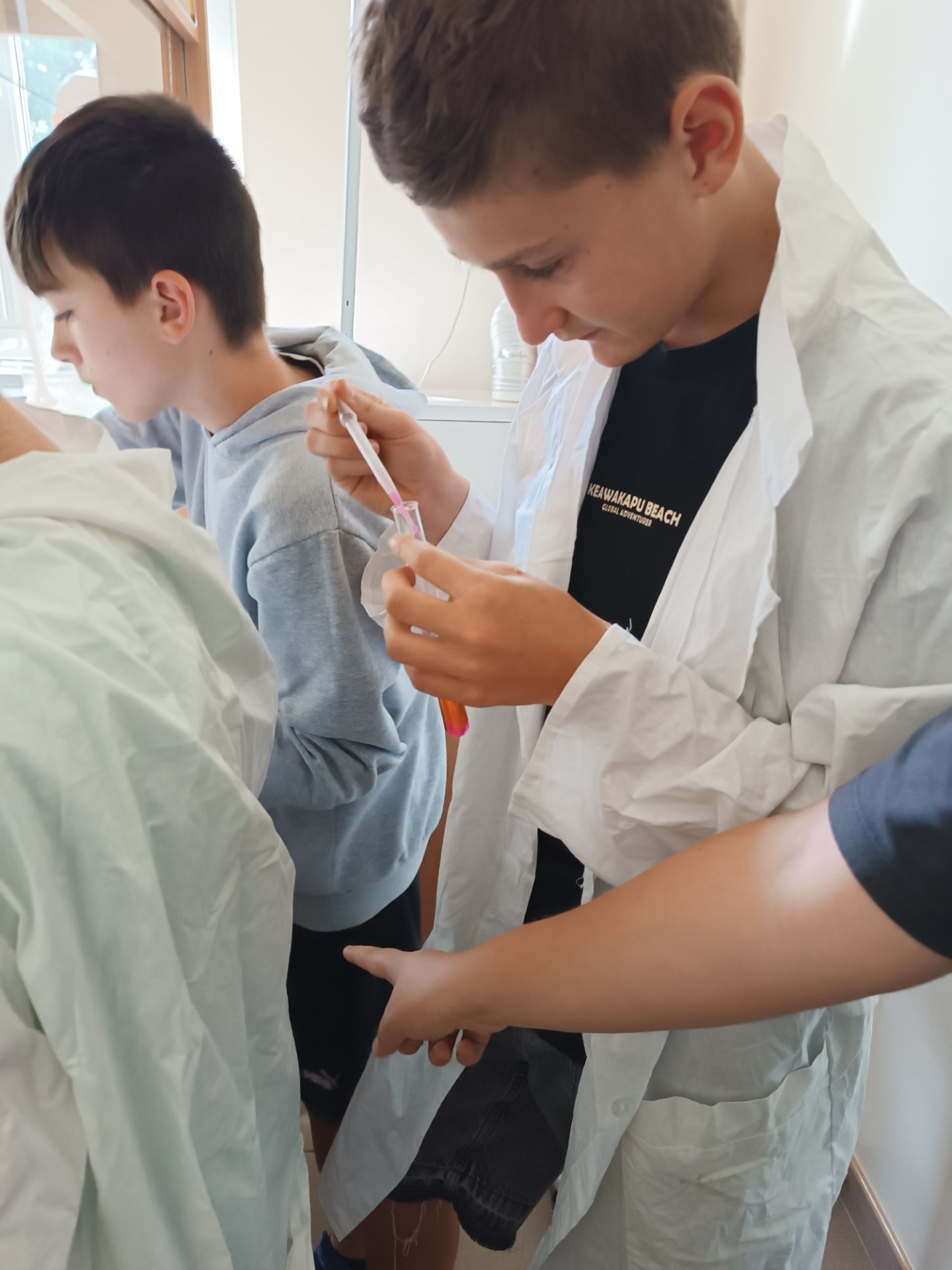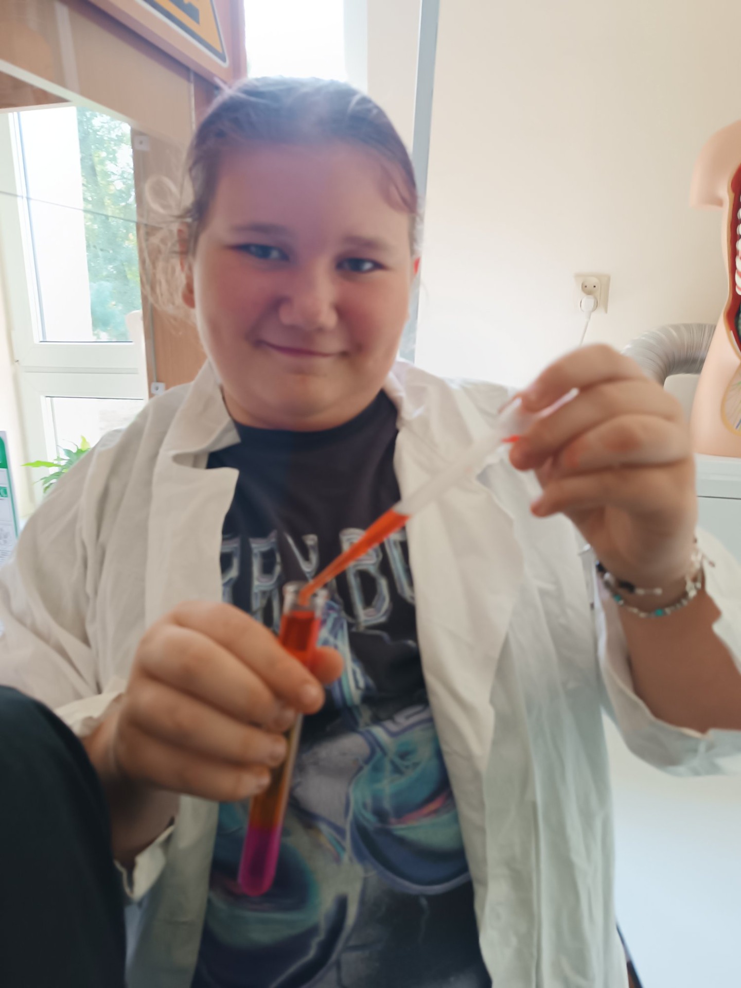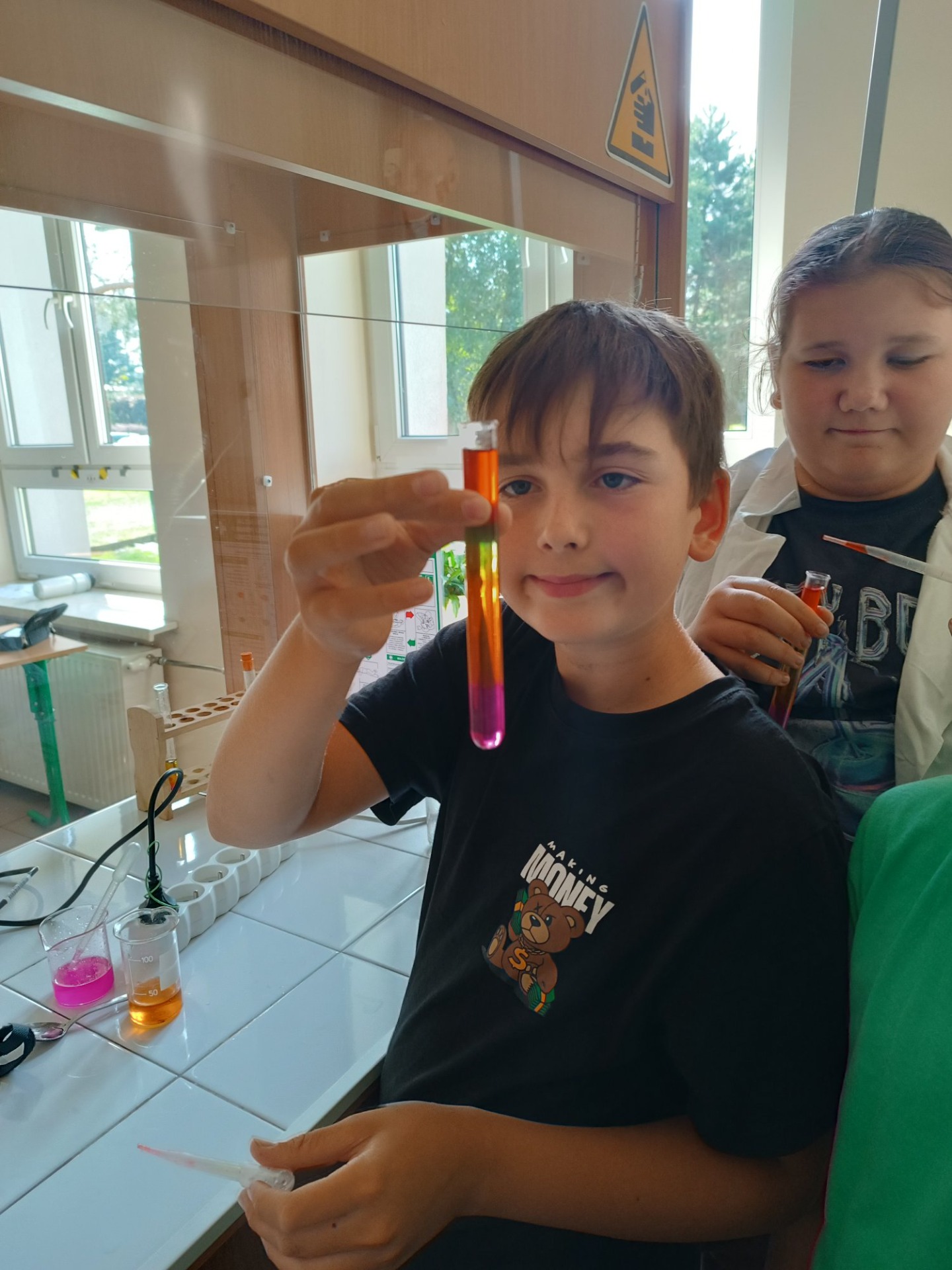 Na lekcji chemii uczniowie klasy VII mieli okazję w praktyce sprawdzić, czym jest gęstość i jak wpływa ona na zachowanie substancji. Aby to zrozumieć, przeprowadziliśmy prosty, a zarazem efektowny eksperyment – stworzyliśmy barwną probówkę.