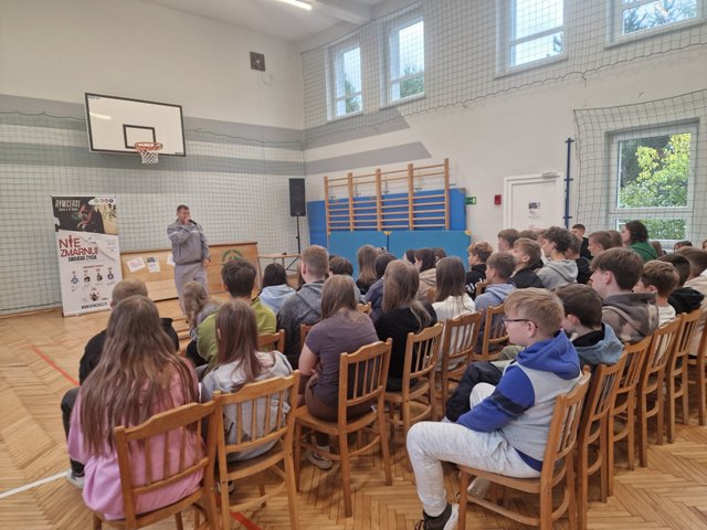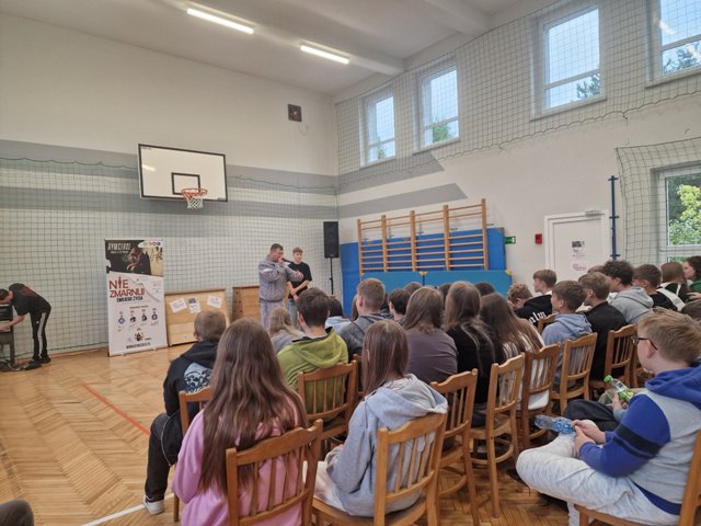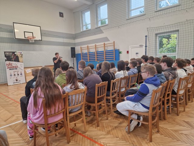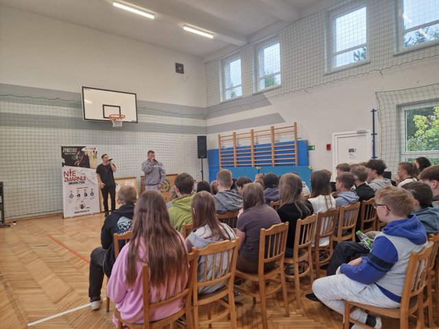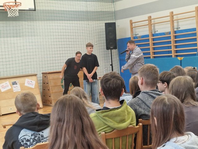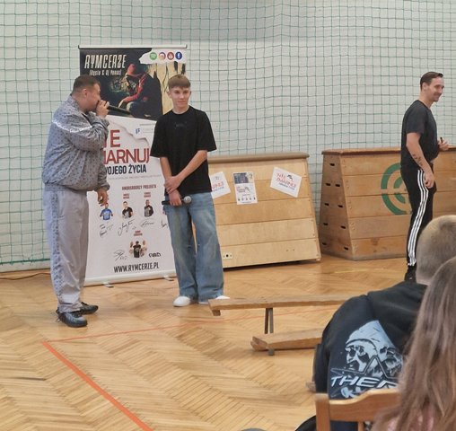 Bardzo ważnym wydarzeniem w tym tygodniu był udział naszej szkoły w projekcie profilaktycznym z inicjatywy Fundacji Edukacja z Wartościami oraz raperów Bęsia i Dj Yonasa „Nie Zmarnuj Swojego Życia! Nie zmarnuj czasu, talentów, relacji. Żyj wartościami. Bądź sobą. Rozwijaj się. Myśl o przyszłości. Bądź kreatywny”, dynamiczne spotkanie z raperami – wykłady profilaktyczne. (01.10.2025r.)
