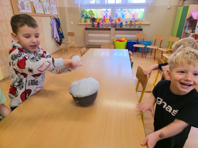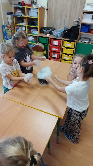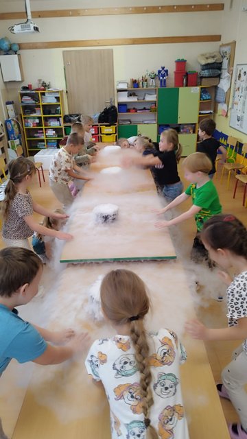 W naszym przedszkolu odbyły się warsztaty naukowe. Poznaliśmy stany skupienia i ich nazwy. Dowiedzieliśmy się, że istnieje suchy lód oraz coś, co nazywamy cieczą NieNewtonowską. Mogliśmy podotykać powstałej piany, różowej masy oraz stworzyć znikającą wiadomość. Było dużo nauki i zabawy!