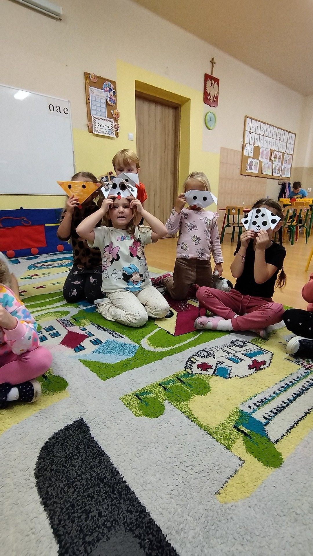 24 października w grupie "Sówek" obchodziliśmy Dzień Kundelka. Dzieci oglądały przyniesione albumy i fotografie przedstawiające różne rasy psów, wysłuchały opowiadania o kundelku Smutasku i samodzielnie wymyślały jego zakończenie. Wiele dzieci opowiedziało o pieskach, które mają w domach, informowały pozostałych, jak o nie dbają, jak się z nimi bawią i jak ważne są w ich życiu. Próbowały odpowiedzieć na pytanie "Jak możemy pomagać tym pieskom, które nie mają domu". Na koniec każde dziecko wykonało mordkę pieska z papieru.