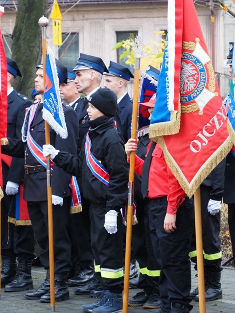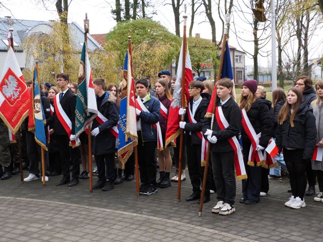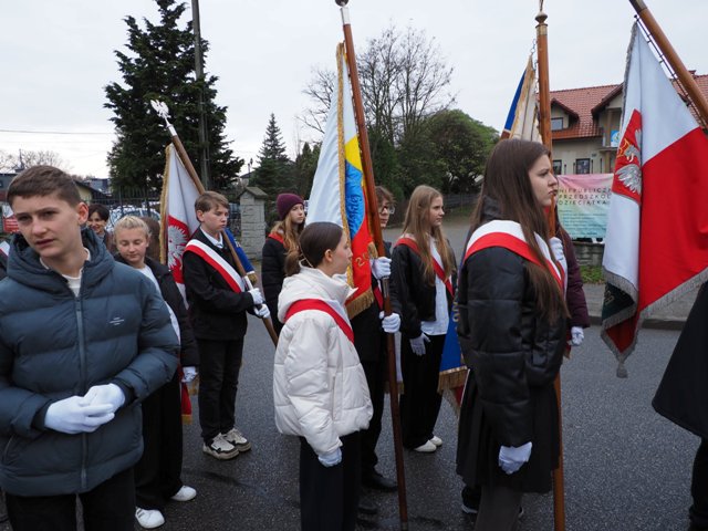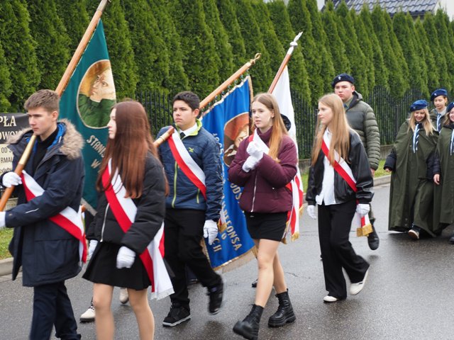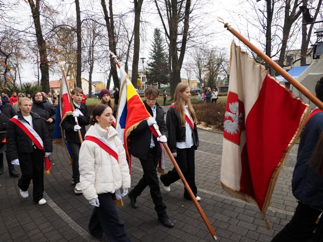 Delegacja i poczet sztandarowy naszej szkoły na uroczystości gminnej z okazji 107. rocznicy odzyskania przez Polskę niepodległości
