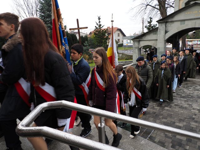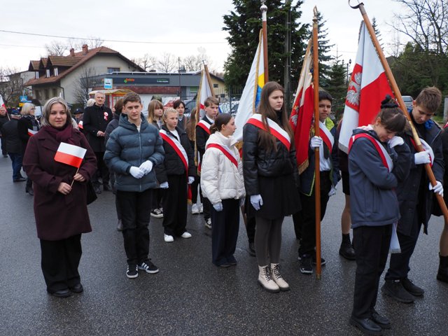W tym szczególnym dniu Dyrektor naszego Zespołu oraz uczniowie: przedstawiciele pocztu sztandarowego Zespołu, pocztu sztandarowego MDP i delegacja Samorządu Uczniowskiego wraz z opiekunami wzięli udział w gminnych obchodach Narodowego Święta Niepodległości, które rozpoczęły się uroczystym pochodem wszystkich uczestników na czele z orkiestrą ZG "Brzeszcze" sprzed Urzędu Gminy do kościoła pw. św. Urbana w Brzeszczach. W kościele odprawiona została msza św. w intencji Ojczyzny, a następnie w Parku Miejskim w Brzeszczach, przy pomniku "Ku czci ofiar faszyzmu" wspólnie odśpiewano "Mazurka Dąbrowskiego", odczytano okolicznościowe przemówienia i złożono biało - czerwone wieńce i kwiaty.