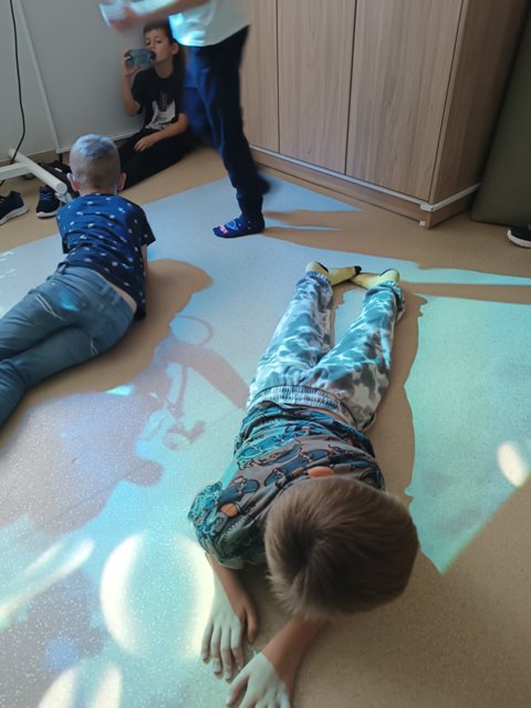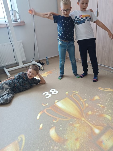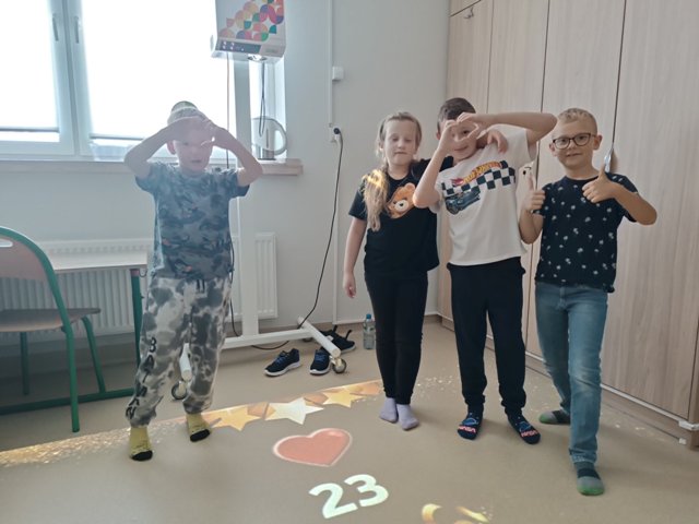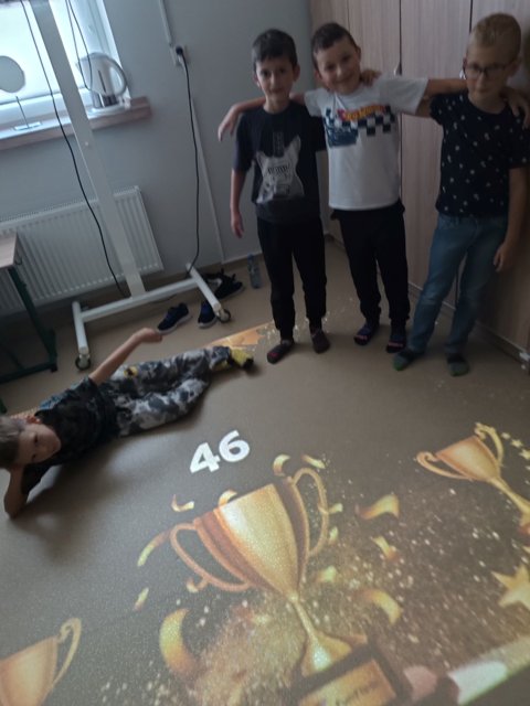 W naszej świetlicy oprócz monitora interaktywnego pojawiła się podłoga interaktywna, która zamienia zwykłą zabawę w niezapomniane przeżycie. Dzięki niej dzieci mogą jednocześnie uczyć się i aktywnie spędzać czas, a każdy dzień staje się pełen emocji i radości. Uczniowie brali udział w wielu ciekawych grach i konkurencjach. Nie zabrakło rozgrywek sportowych, które wywołały mnóstwo pozytywnej energii i zdrowej rywalizacji. Były m.in.: