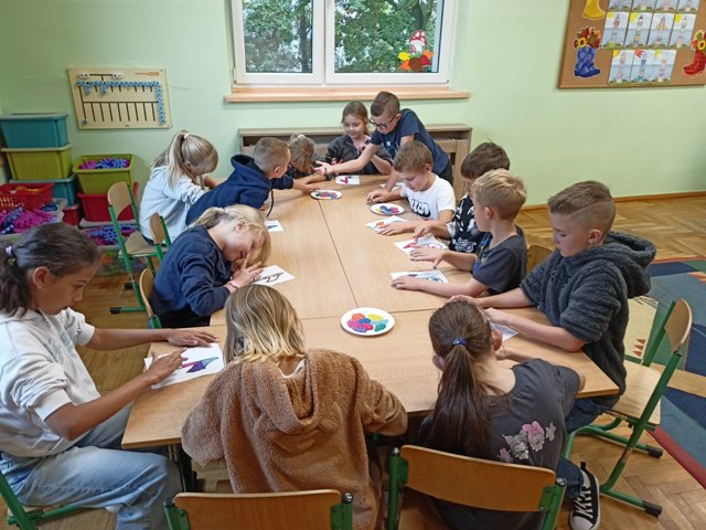 W świetlicy szkolnej systematycznie odbywają się zajęcia opiekuńczo – wychowawcze, podczas których uczniowie chętnie spędzają czas bawiąc się w kącikach zainteresowań. Elementami stałymi pracy świetlicowej są zajęcia plastyczne i muzyczne, ukierunkowane zmianami pór roku oraz kalendarzem świąt typowych i… nietypowych. Nasze świetliczaki lubią też kodowanki, rebusy, krzyżówki oraz spędzanie czasu na świeżym powietrzu.