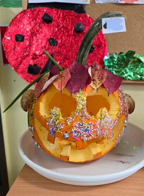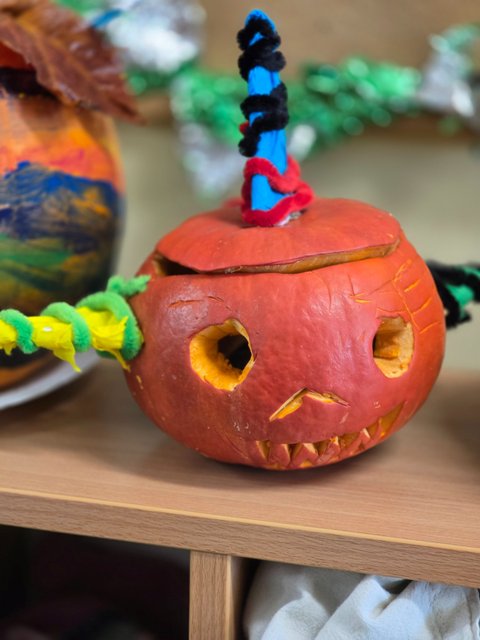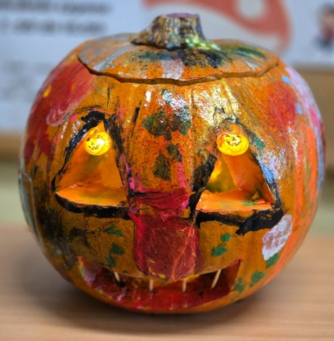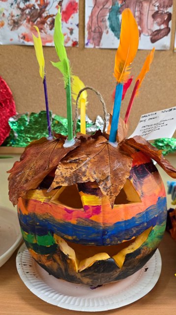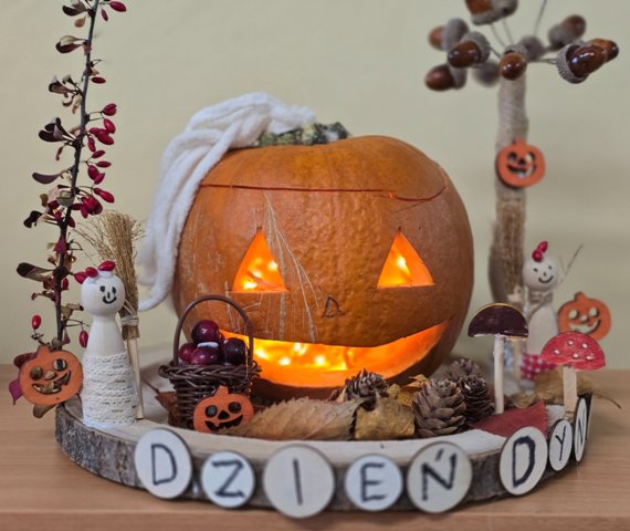 Dodatkowo bardzo dużo dzieci wzięło udział w konkursie na najbardziej kreatywny lampion z dyni. Każda dynia była inna i niezwykle kreatywna. Dziękujemy Rodzicom za wsparcie.