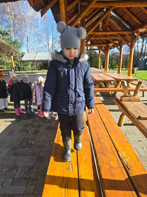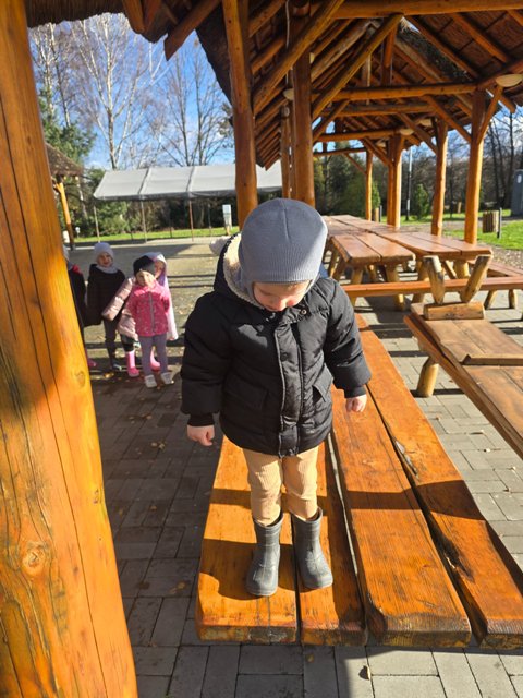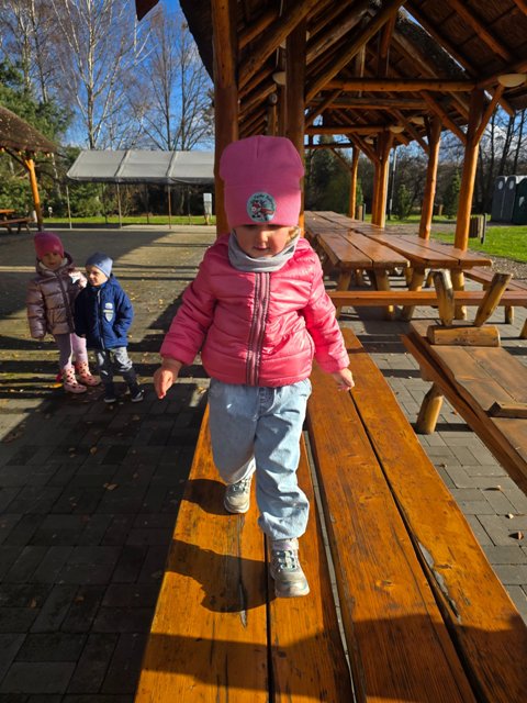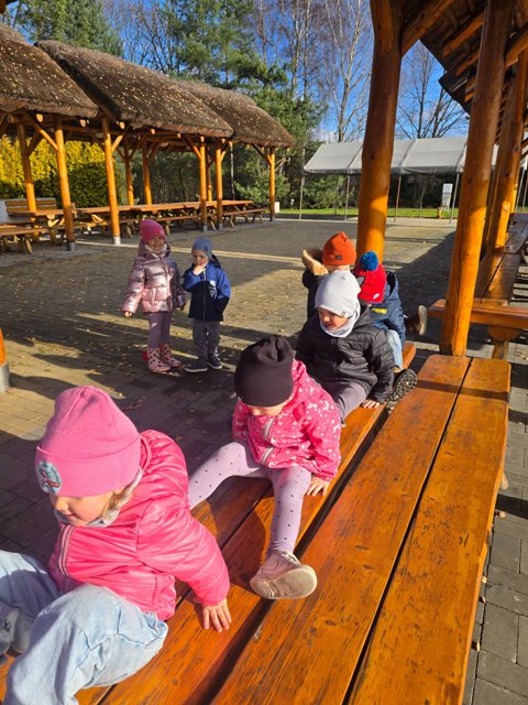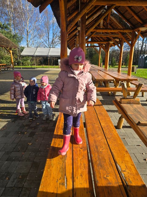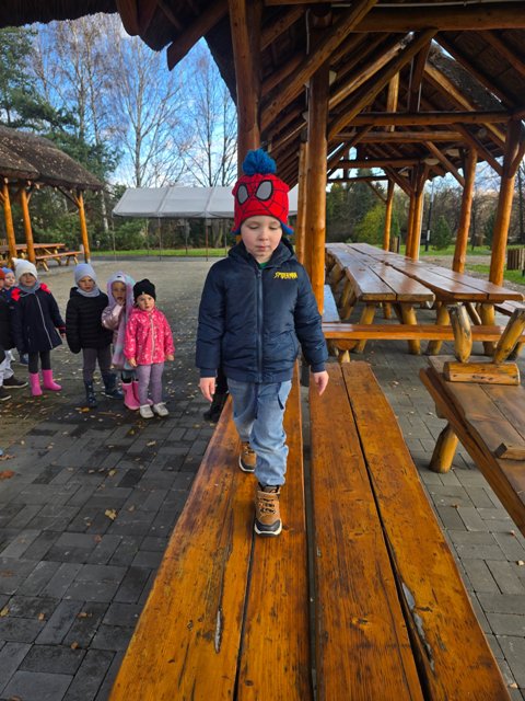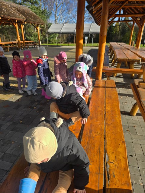 Jak co wtorek w grupie Maluszków odbył się dzień sensoryczny. Tym razem wybraliśmy się na podwórko i ćwiczyliśmy na ławeczkach... Bo kto powiedział, że zajęcia sensoryczne muszą odbywać się jedynie w sali?