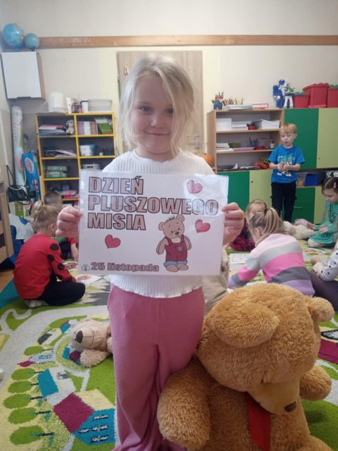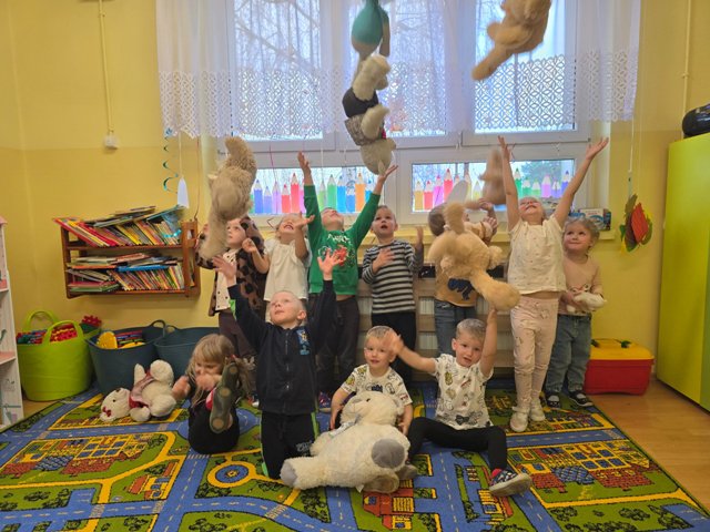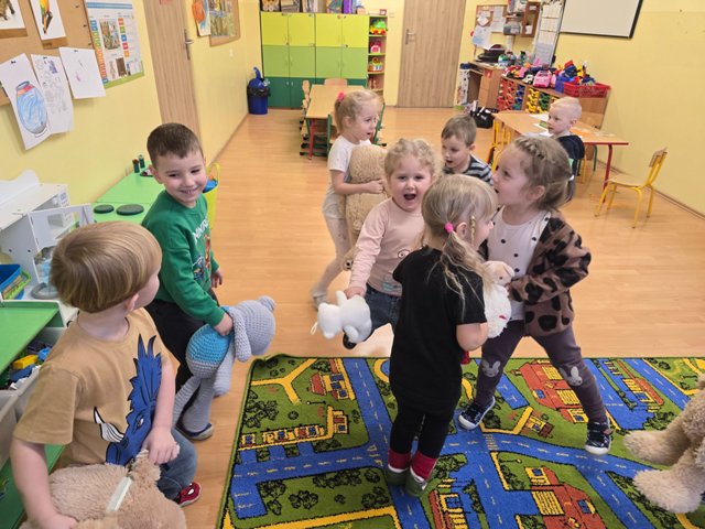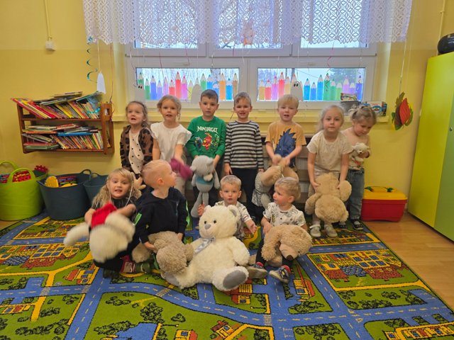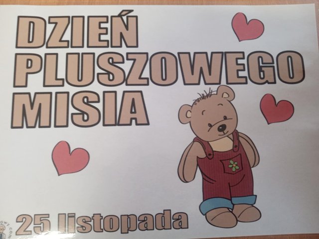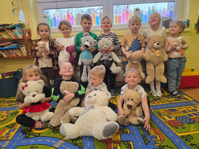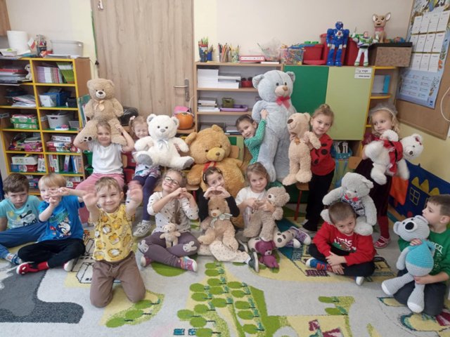 25 listopada obchodziliśmy Dzień Pluszowego Misia. Wszystkie przedszkolaki mogły przynieść do przedszkola pluszowe misie, niezależnie od rozmiaru, czy koloru. Dzieci poznawały misiowych bohaterów książkowych. Była misiowa gimnastyka, malowanie paluszkami, dużo kolorów i przytulasków :)