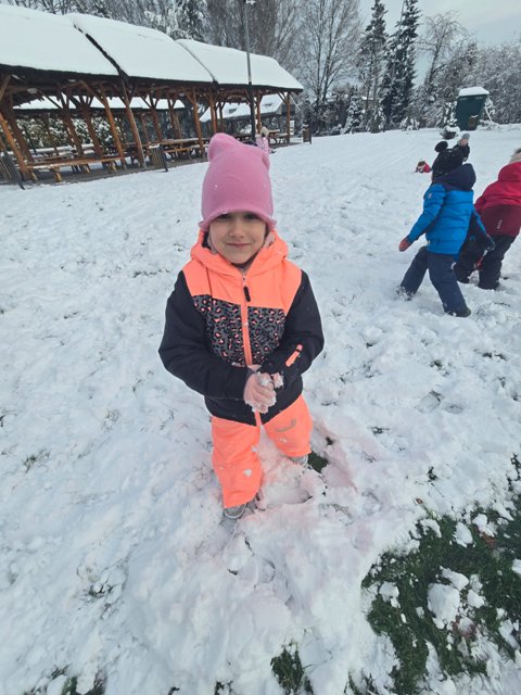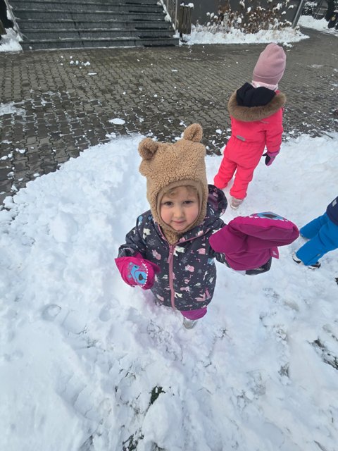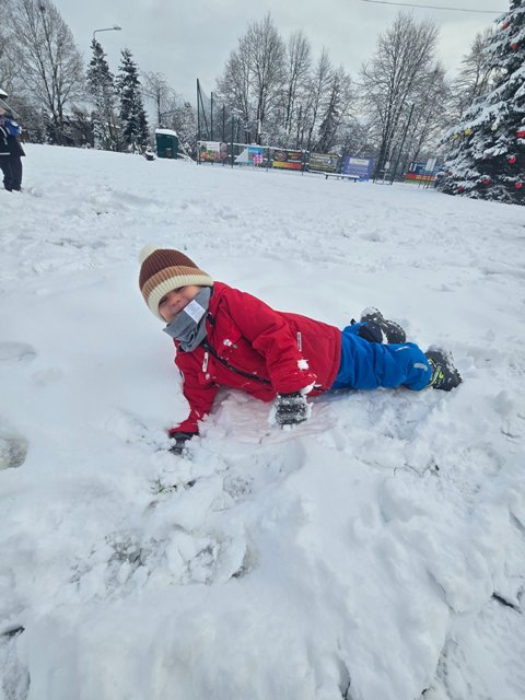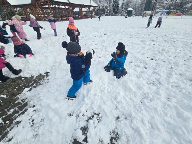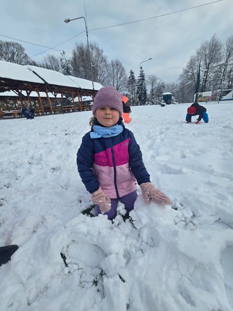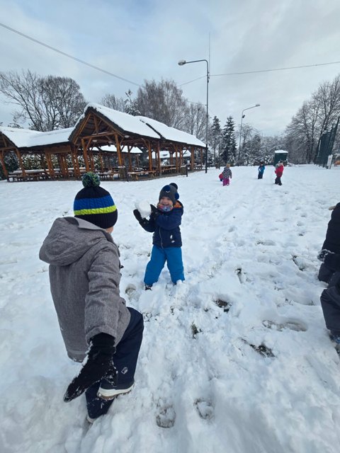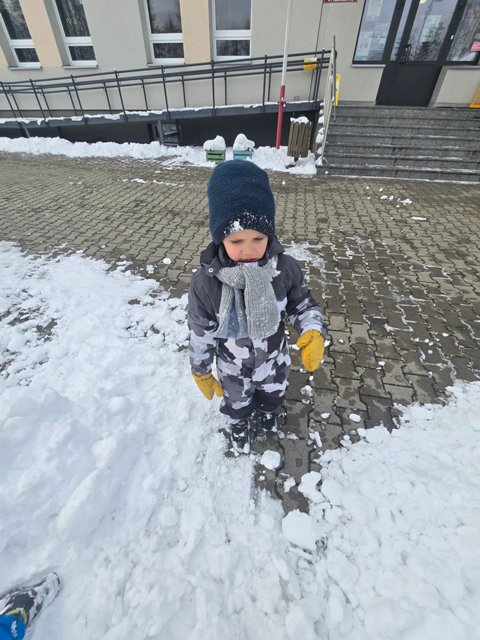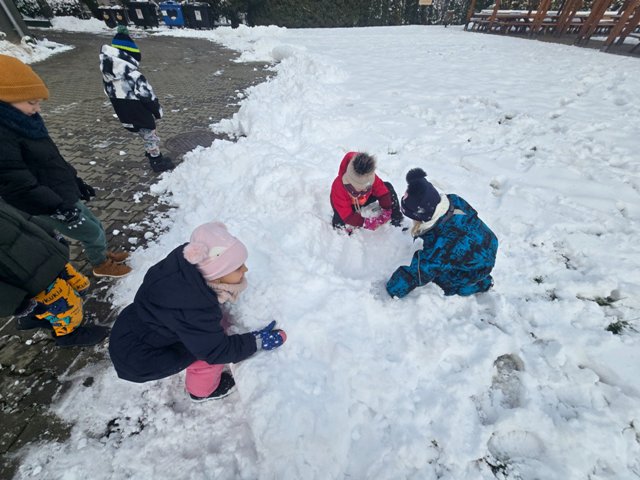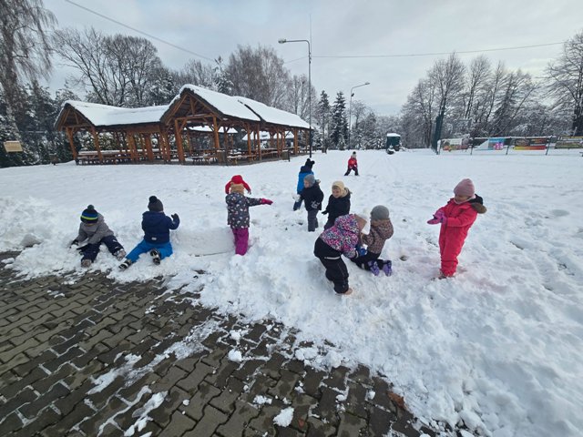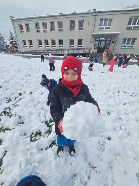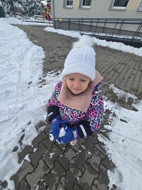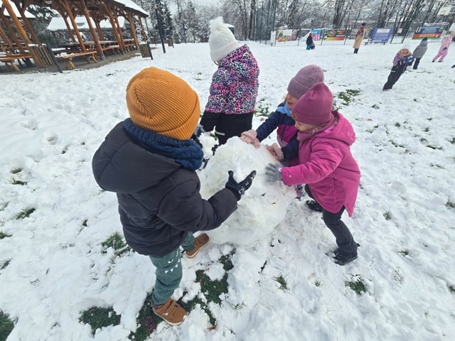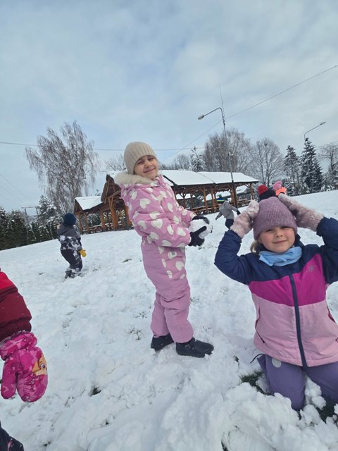 Hurra! Przyszła do nas zima! Trzeba było wykorzystać pogodę i pójść poszaleć w śniegu. Dzieciaczki zrobiły bałwanki, kule i powstała nawet śnieżna gąsienica :) Dużo śniegu i odpowiednie ubranie to przepis na wspaniałą zabawę!