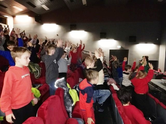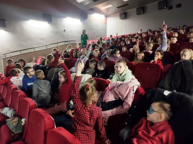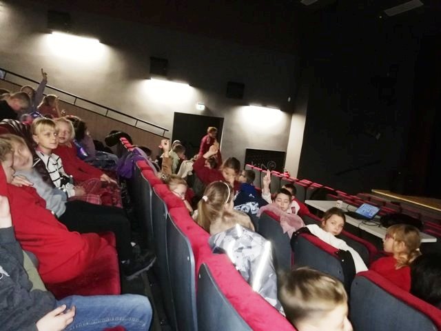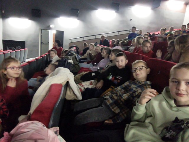28 listopada 2025 roku klasy I-III wzięły udział w projekcie KinoSzkoła w kinie "Wisła" w Ośrodku Kultury w Brzeszczach. Obejmował on cykl profilaktyczno-społeczny: rozwój kompetencji komunikacyjnych, społecznych i emocjonalnych, budowanie poczucia własnej wartości i sprawczości. Uczniowie aktywnie uczestniczyli w prelekcji "Szacunek należy się każdemu" oraz obejrzeli tematyczny film "Emma odważna". Wypowiadali się i dokonywali autorefleksji. Utożsamiając się z bohaterami, odkrywali ważne w życiu wartości, takie jak: przyjaźń i szacunek oraz możliwość pracy nad własnymi emocjami. Podczas wyjazdu dzieci miały możliwość utrwalenia wiadomości, umiejętności i postaw społecznych.